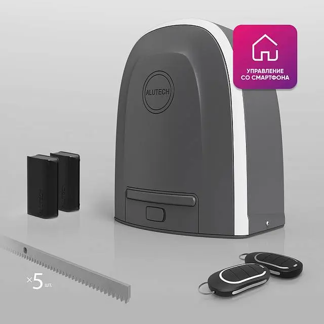 Умный привод для откатных ворот ALUTECH Roteo RTO-500MKIT-Sm + проводные фотоэлементы LM-L + рейка ROA8 (5 шт.)
